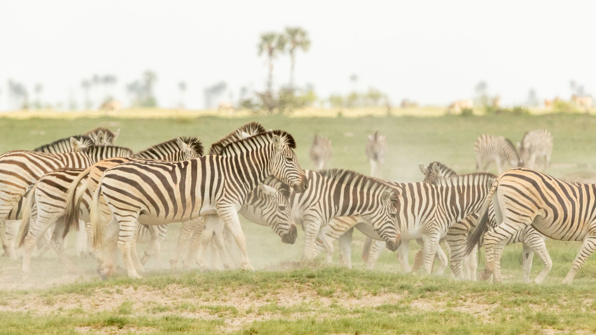 Entre l’hiver et l’été, une partie des zèbres du Makgadikgadi vont et viennent entre la rivière Boteti et l’Est des pans. En saison sèche, nous retrouvons les zèbres par centaines le long de la rivière avant qu’ils ne rejoignent massivement les plaines herbeuses autour de Njuca Hills, Tree Island et Jack’s Camp dès les premières grosses pluies. Quand les pans s’assèchent et que l’herbe se raréfie à nouveau, les animaux reviennent du côté de Boteti, attendant le moment où les eaux de l’Okavango viennent regonfler la rivière.